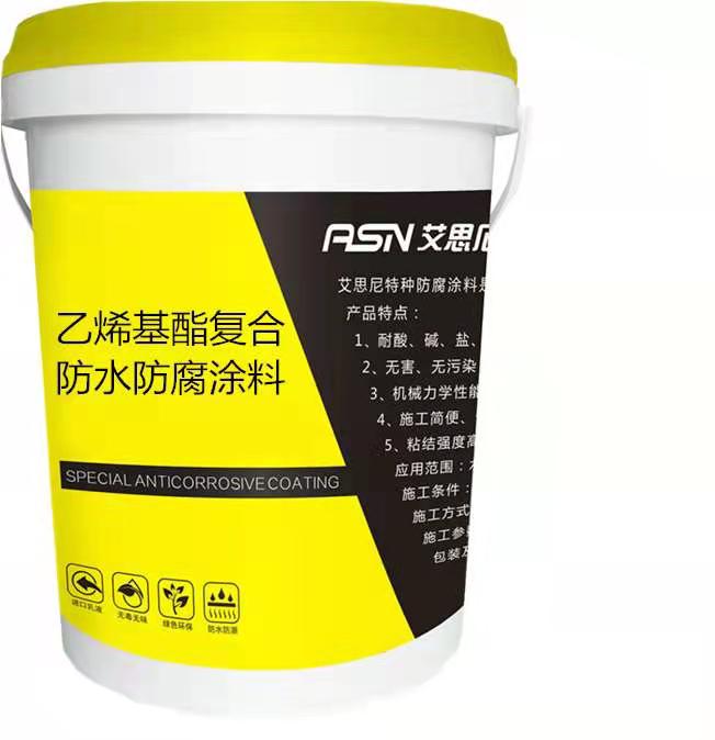 艾思尼乙烯基酯防水防腐涂料是一种双组份材料,可以做成白色及速企屏蔽或多种颜色产品,产品为国标产品,具有良好的弹性及泡水性能!产品是一些污水处理厂好的选择!